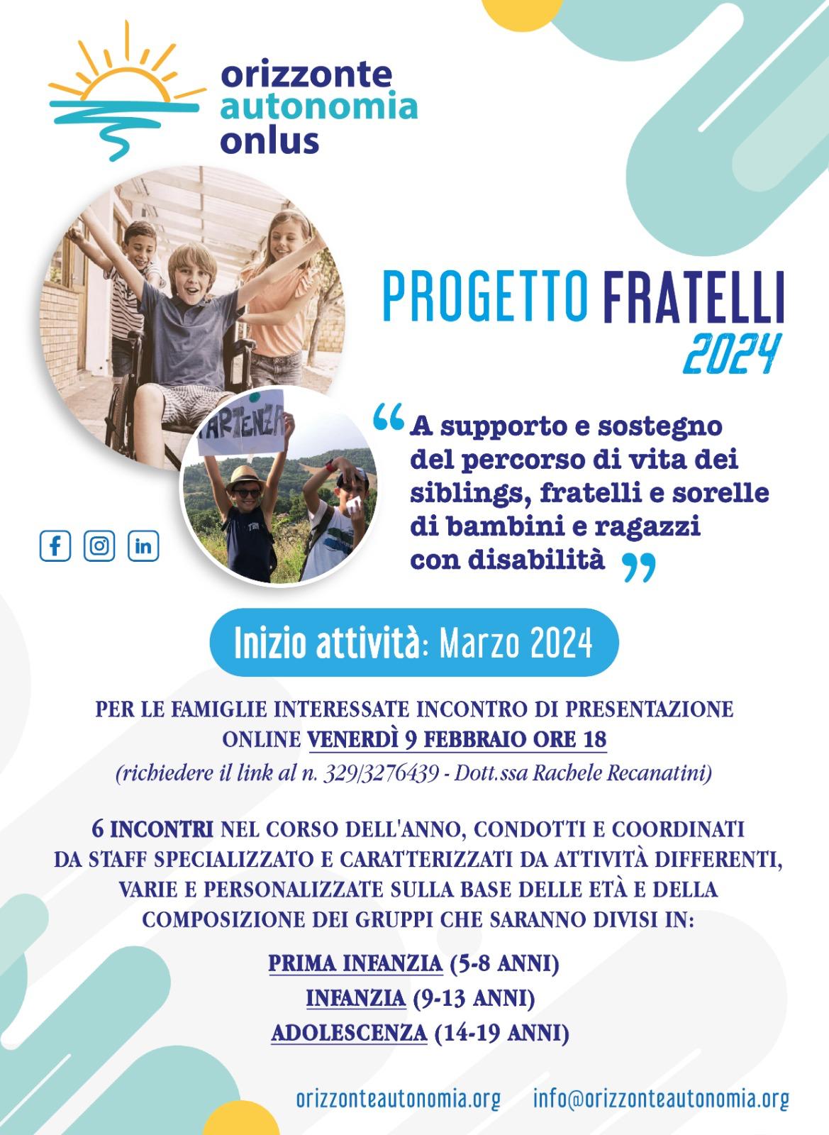 È una quotidianità in cui possono presentarsi attese, domande, attenzioni rivolte altrove; ma anche una opportunità di crescere precocemente sviluppando empatia, e resilienza. Con il Progetto Fratelli, attivo dal 2015, la Fondazione Orizzonte Autonomia ETS sceglie di mettere al centro proprio loro: i siblings, come protagonisti del racconto familiare.